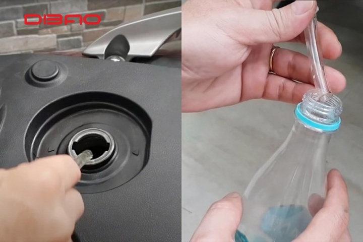 Cách hút xăng xe máy tay ga bằng ống dẫn và chai nước nhựa